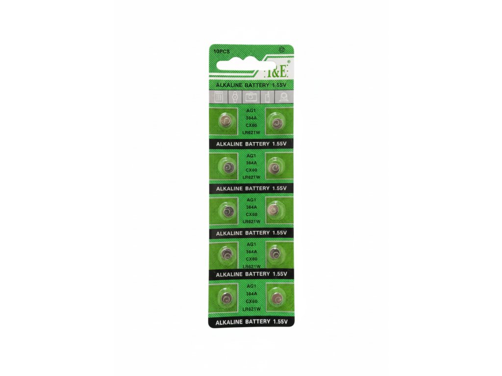 Sada deseti alkalických knoflíkových baterií T&E typu AG1, známých také pod označením 384A, CX60 nebo LR621W. Tyto baterie poskytují napětí 1,55 V a jsou baleny v praktickém blistru. Jsou ideální pro napájení drobných elektronických zařízení, jako jsou kalkulačky, hodinky, fotoaparáty, hračky nebo menší svítilny. Sada obsahuje 10 kusů baterií.