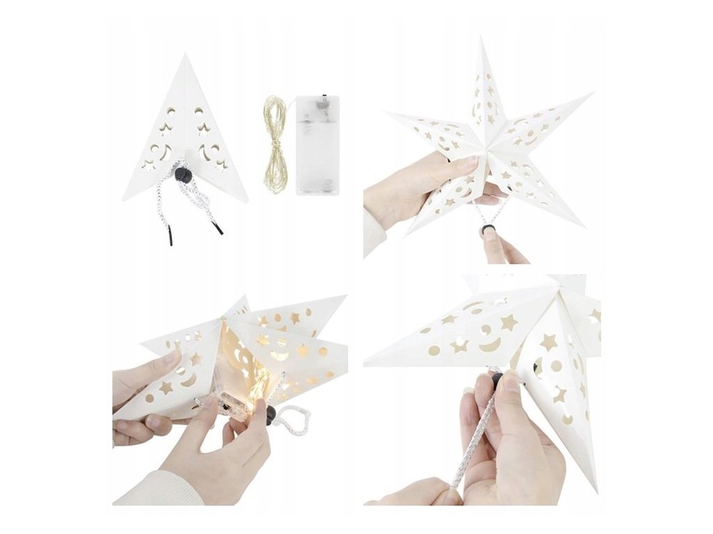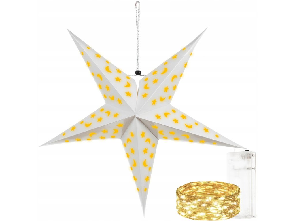 Papírová 3D hvězda s LED podsvícením je dekorace, kterou můžete ozdobit krb, schodiště, okno nebo stůl. Zdobení prolamovaným vzorem a nasvícení LED diodami vytvoří úžasnou atmosféru a dodá teplo do vašeho domu za dlouhých zimních večerů. Vhodné použít také jako vánoční dekoraci.