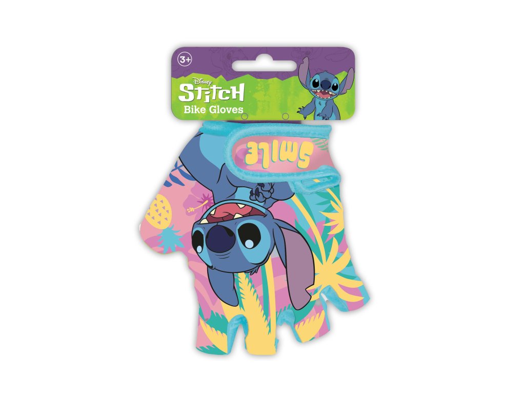Dětské cyklistické rukavice s motivem Stitch jsou vyrobeny z odolných materiálů s barevným potiskem oblíbených postaviček. Rukavice mají suchý zip pro snadné přizpůsobení velikosti dětské ruky. Spodní část rukavice je opatřena protiskluzovým materiálem pro lepší úchop řídítek. Chrání dlaně dítěte při jízdě na kole, koloběžce a dalších aktivitách.Doplňkové parametry