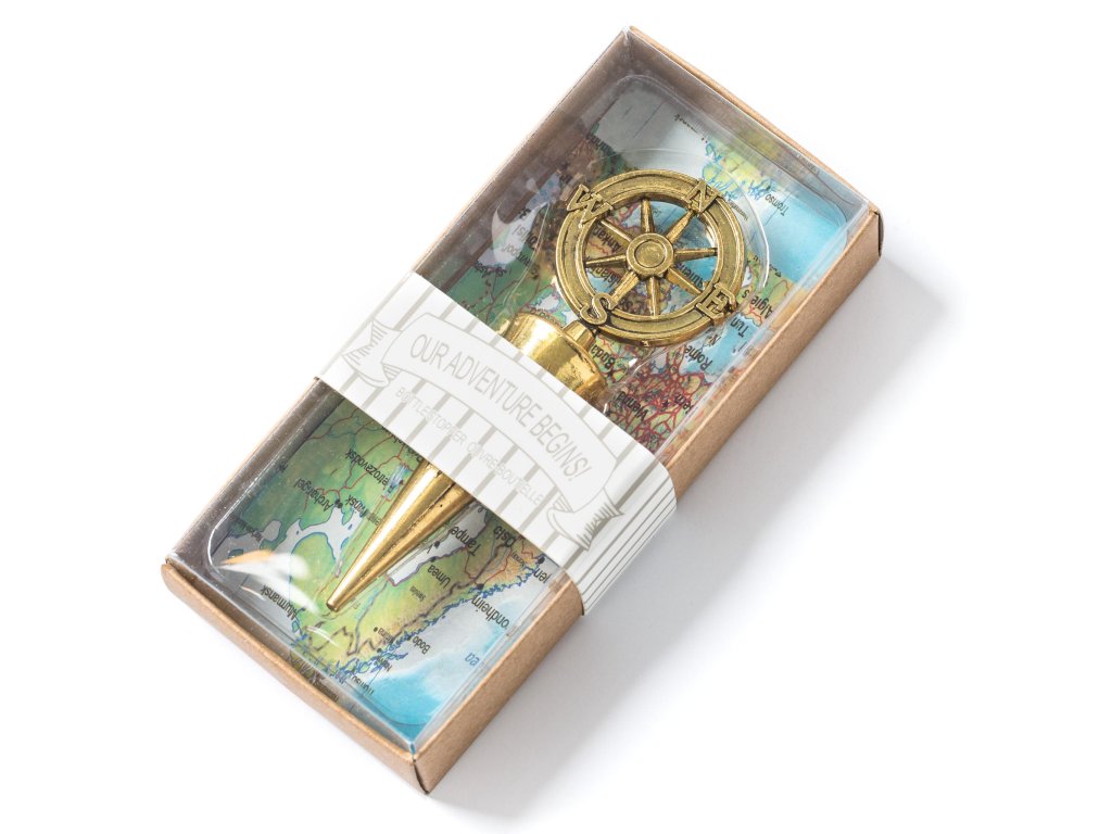 Elegantní zátka na víno s kompasovou růží přináší retro šarm do vaší domácnosti.