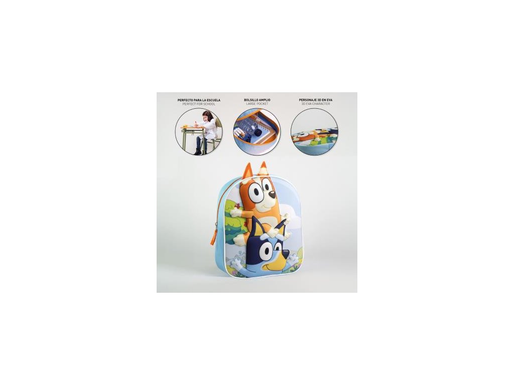 Tento dětský 3D batoh s motivem Bluey je ideálním společníkem pro školu i výlety. Pevná a odolná konstrukce ochrání obsah a zaručí pohodlné nošení po celý den. Materiál: 67%POLYESTER, 33%EVA. Rozměry: 22.0 × 30.0 × 10.0 CM cm. Hmotnost: 0,188 kg. Vhodné pro děti předškolního a školního věku.