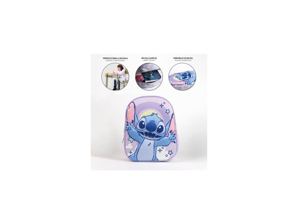 Tento dětský 3D batoh s motivem Stitch je skvělým pomocníkem pro školu i volný čas. Pevná konstrukce a pohodlné nastavitelné popruhy zajišťují příjemné nošení po celý den. Materiál: 67%POLYESTER, 33%EVA. Rozměry: 25.0 × 32.0 × 10.0 CM cm. Hmotnost: 0,229 kg. Vhodné pro děti předškolního a školního věku.
