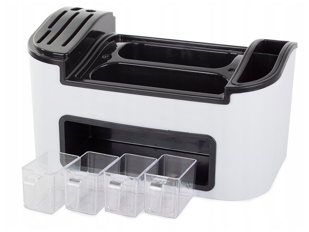 Snadná údržba: Organizér je snadno demontovatelný pro důkladné vyčištění a je vhodný i do myčky. Základna slouží zároveň jako odkapávač, což udržuje kuchyňskou linku suchou.