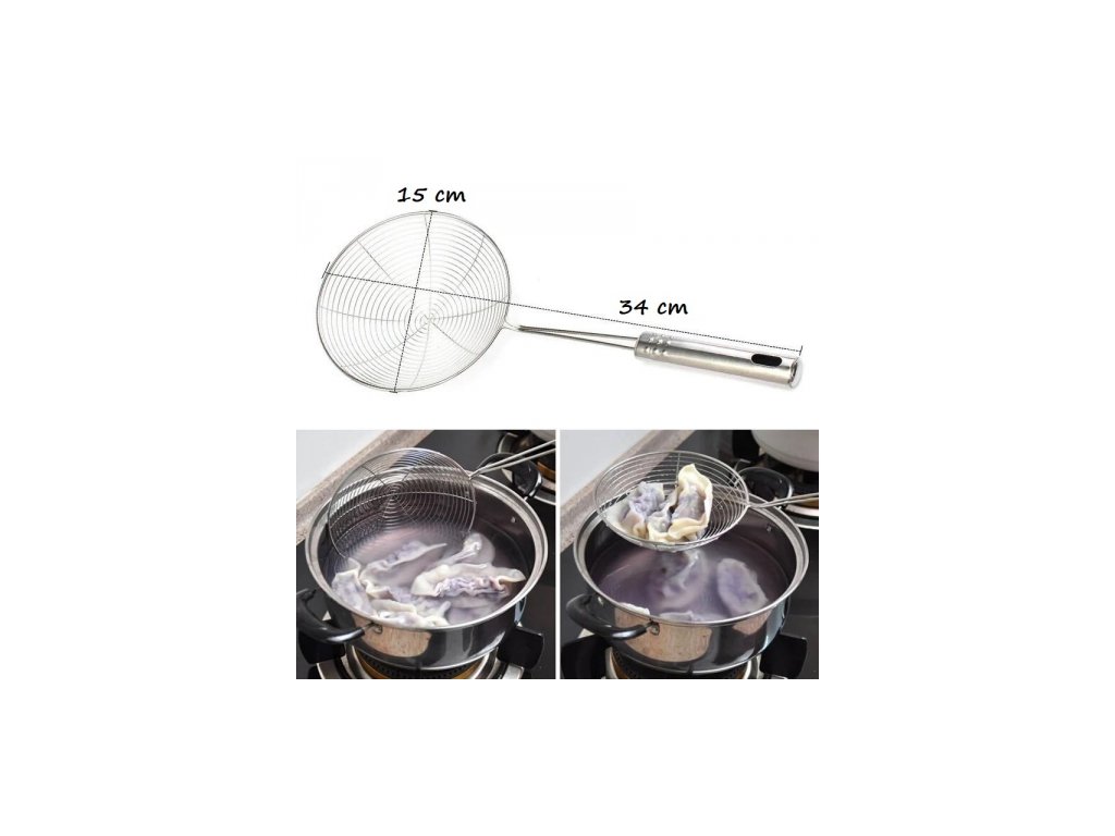 Efektivní design: Husté sítko má design, který usnadňuje zachycení hranolek, nudlí nebo knedlíků, což je užitečné při vaření různých pokrmů.