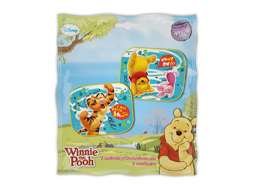 Sluneční clony do auta s motivem Medvídek Pú jsou ochranné štíty, které se připevňují na boční okna vozidla. Účinně brání pronikání slunečního záření do interiéru, chrání dítě před přímým sluncem a pomáhají udržovat příjemnou teplotu v autě. Clony jsou zdobeny oblíbenými postavičkami a snadno se instalují pomocí přísavek. Balení obsahuje 2 kusy.Doplňkové parametry
