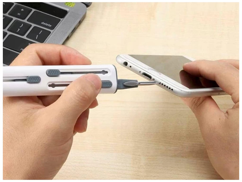 Multifunkční nástroje: Tato kompaktní čisticí sada obsahuje nástroje speciálně navržené pro efektivní čištění sluchátek a další drobné elektroniky, jako jsou smartphony, fotoaparáty, tablety a notebooky. Kompaktní design s ochranným krytem umožňuje snadné nošení a použití kdykoliv a kdekoliv.