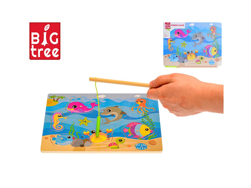 Dřevěná magnetická hra na chytání rybiček Big Tree o rozměrech 30x22 cm je skvělou edukativní hračkou. Děti pomocí magnetického prutu chytají barevné rybičky, čímž rozvíjejí jemnou motoriku, koordinaci ruky a oka a trpělivost. Vyrobeno z kvalitního dřeva. Vhodné pro děti od 24 měsíců.Doplňkové parametry