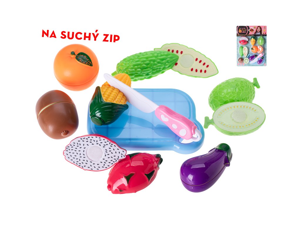 Sada 16 kusů ovoce a zeleniny na suchý zip je skvělou edukativní hračkou. Děti si mohou procvičovat krájení pomocí plastového nožíku - kousky se k sobě přilepí na suchý zip a lze je opakovaně dělit. Rozvíjí jemnou motoriku a učí poznávat druhy ovoce a zeleniny. Vhodné pro děti od 3 let.Doplňkové parametry