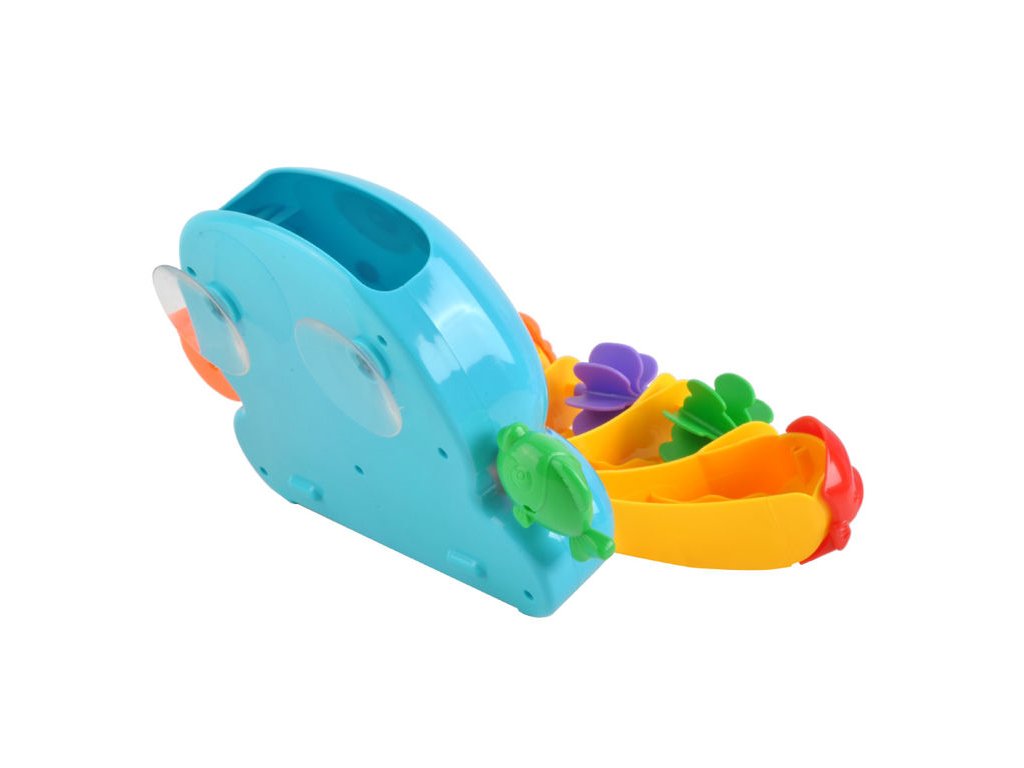 Nová, bezpečná, barevná, veselá hračka určená na hraní při každodenním koupání. Okouzlující skluzavka s barevnými šálky na nalévání vody, poskytne zábavu každému malému milovníkovi dlouhých lázní. Hračka je umístěna tak, aby se voda vylila na hlavu hračky, pak se nalije přes barevné cívky, díky kterým se budou otáčet hračky na konci tobogánu. Hračka má nainstalované gumové přísavky, které usnadňují její upevnění na místo vhodné pro děťátko. Stimuluje fantazii a šikovnost, učí, jak skládat a spojovat díly a motivuje Vás k vymýšlení různých příběhů. Rozvíjí tvořivost a fantazii dítěte při jeho zábavě ve vaně.