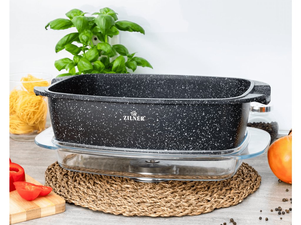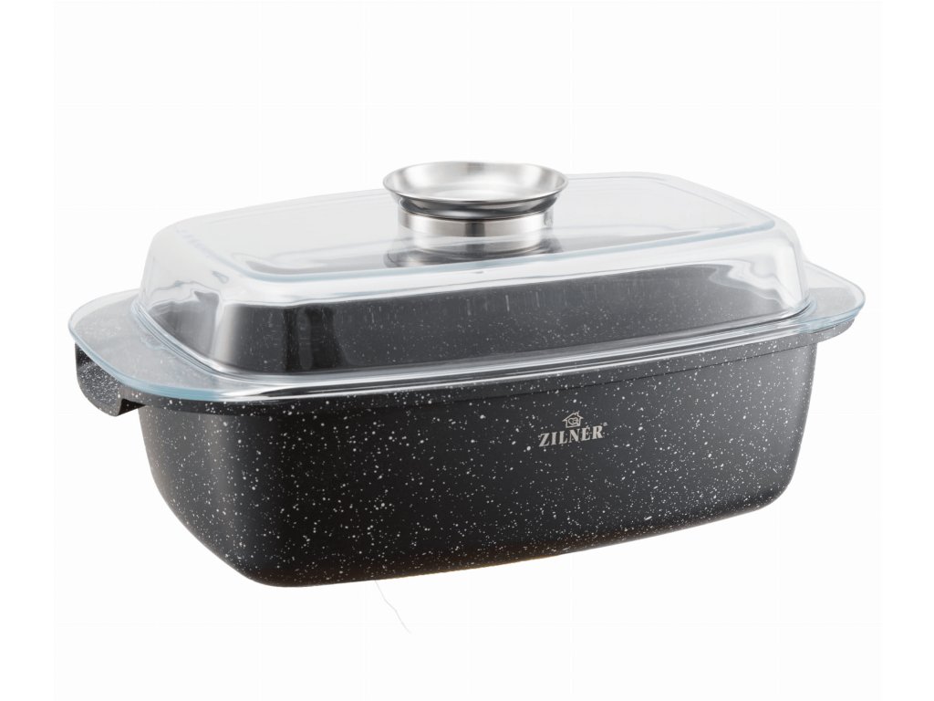 Pekáč s nepřilnavým mramorovým povrchem a skleněným víkem, objem 5,5 l