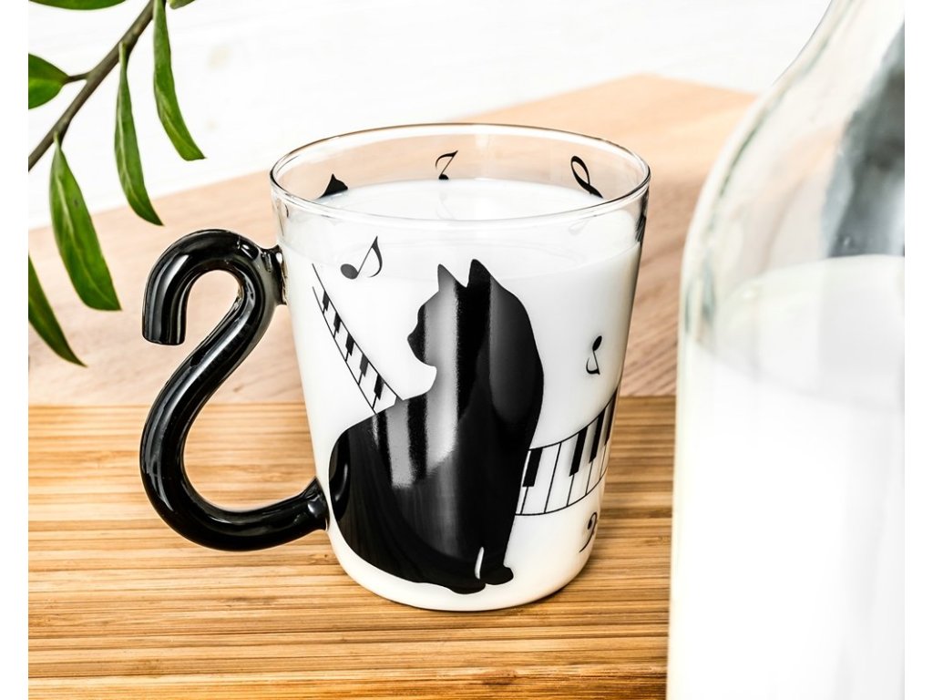 Skleněný hrnek kočka s ocasem - 300 ml
