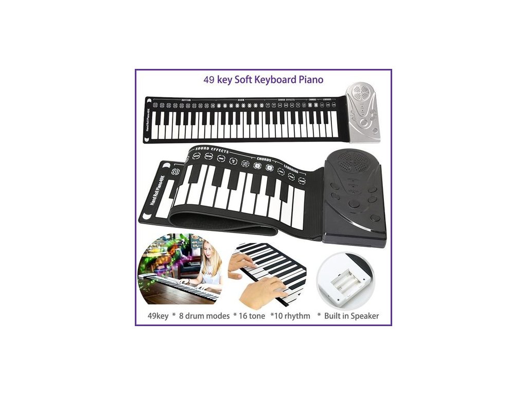 Piano je vyrobeno ze silikonového materiálu, lze jednoduše srolovat a přemístit kamkoliv. Je velmi lehké, snadno ovladatelné a vždy po ruce. Rolovací piano lze připojit na sluchátka. Silikonové piano dokonale řeší problém, kam s klavírem. Je snadno omyvatelné a v podstatě nepoškoditelné.