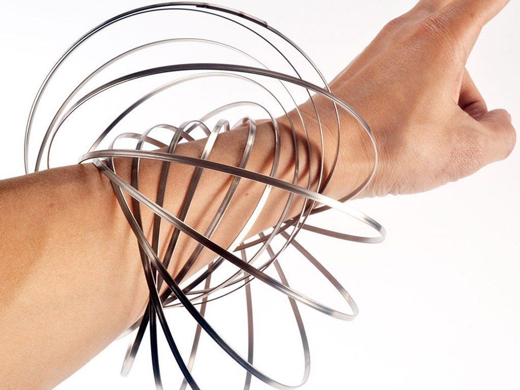 Tipy: Rozpohybujte pružinu a omotejte jí - omotá se kolem čehokoliv. Můžete si ji tak předávat - přelévat z ruky na ruku nebo ji nasadit na věci kolem sebe.