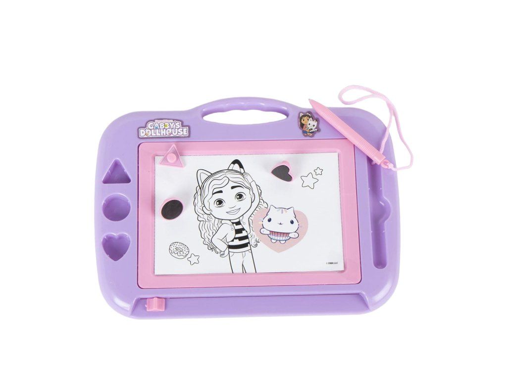 Magnetická kreslící tabulka s motivem Domek pro panenky Gabby je zábavným pomocníkem pro psaní a kreslení. Magnetická tabule s oblíbenými motivy nabídne hodiny zábavy a pomůže rozvíjet psací dovednosti. Materiál: 100% PLASTIC ABS. Rozměry: 32.5 × 24.5 × 3.0 CM cm. Hmotnost: 0,35 kg. Vhodné pro děti předškolního a školního věku.