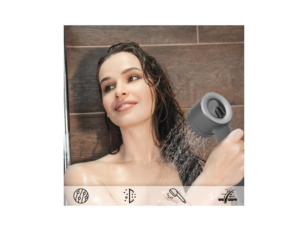 Specifikace: barva šedá, balení obsahuje 1 masážní sprchovou hlavici a 2 PP filtry.