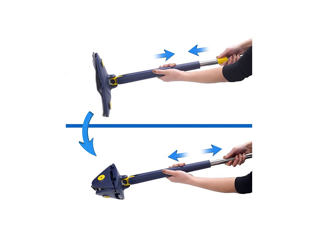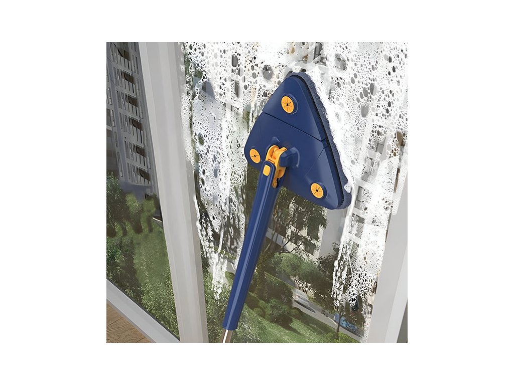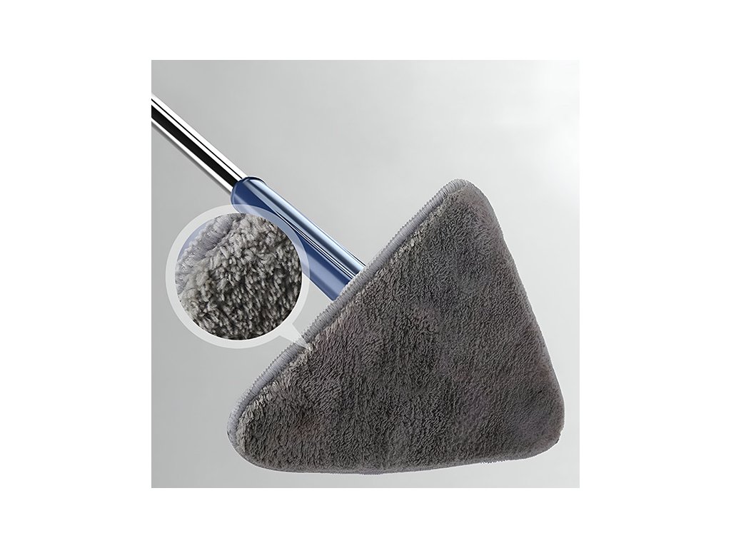 Trojúhelníková hlava mopu se přesně hodí do rohů stěn, stropů i okenních rámů, zatímco plná rotace 360° vám umožňuje čistit v jakémkoli úhlu bez zbytečného přetáčení celého mopu. Mikrofibrový materiál hlavy zachytí prach a nečistoty efektivně a bez jejich rozmetání do vzduchu.