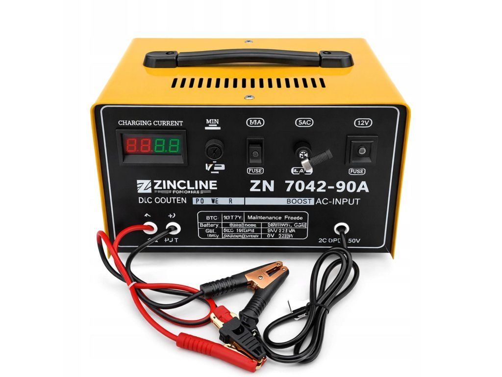 Zařízení disponuje přehledným digitálním displejem, který v reálném čase zobrazuje aktuální nabíjecí proud. Odolná celokovová konstrukce s horním madlem a efektivním systémem větracích otvorů zaručuje stabilitu a ochranu vnitřních komponent proti přehřátí.