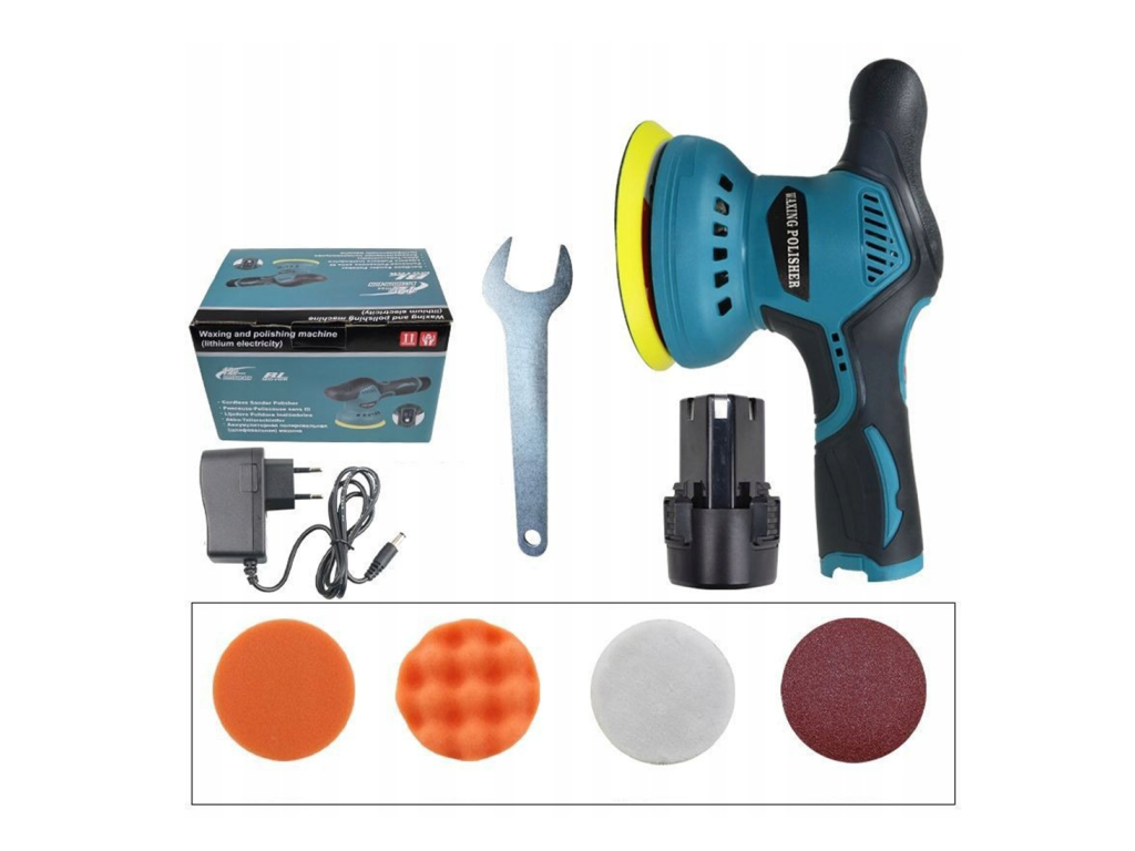 V bohatém balení naleznete vše potřebné pro okamžitý start. Kromě samotného stroje a baterie s nabíječkou obdržíte vlnitý a plochý houbový kotouč pro různé fáze leštění, vlněný kotouč pro finální vysoký lesk a brusný papír pro přípravu povrchu. Vše je navrženo pro ergonomický úchop a dlouhou životnost při pravidelném používání.