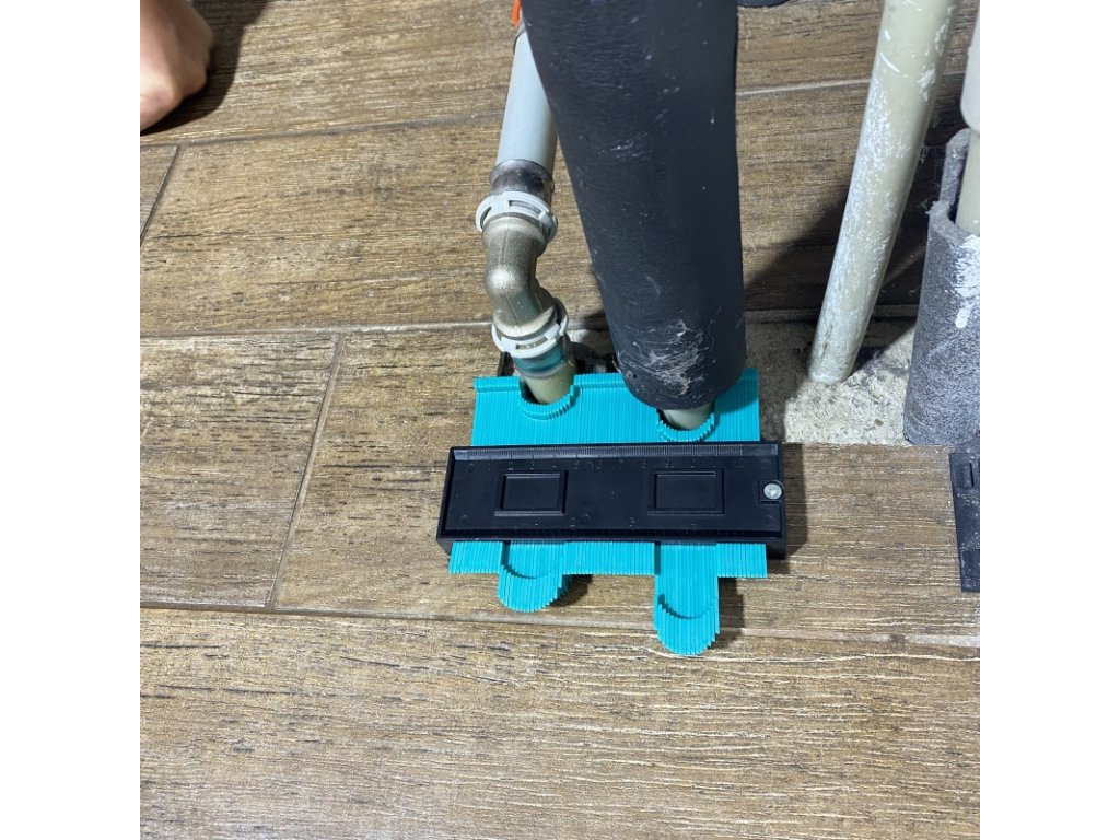 Plastová obrysová šablona pro přenášení tvarů profilů předmětů. Praktická pomůcka například pro karosáře, nebo při pokládání plovoucích podlah. Přiložením lamel šablony k předmětu břity lamel kopírují obrys, který je možno přenést jinam.