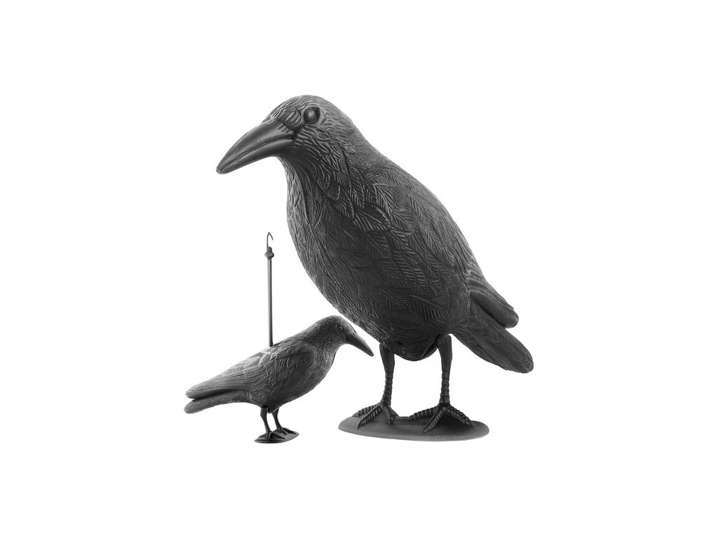 SNADNÁ MONTÁŽ - odpuzovač lze namontovat 2 způsoby, postavit na nožku nebo zavěsit na háček, který je součástí sady; díky háčku můžete figurku snadno zavěsit kamkoli a změnit její polohu; poryvy větru způsobí změnu polohy odpuzovače, který napodobuje pohyb skutečného havrana.