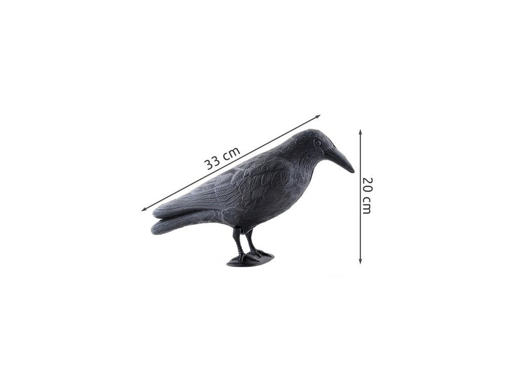 REALISTICKÝ VZHLED - přesná reprodukce ptačích anatomických detailů, jako je uspořádání křídel, opeření a tvar a velikost zobáku, stejně jako intenzivní barva dělají z figurky zdařilou imitaci skutečného havrana, a tím zvýšit šance na účinné odstrašení ostatních ptáků.