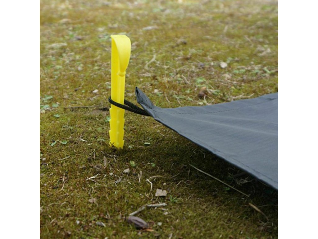 Plážová podložka je vyrobena z odolného nylonu, což je nepromokavý materiál. Poskytuje pohodlí při používání a má vynikající vlastnosti pro použití na různých površích a povětrnostních podmínkách. Za všech podmínek je podložka bezproblémová a odvede svou práci, protože má v rozích připravené kroužky, kterými jej můžete pomocí přiložených klínů připevnit do země.