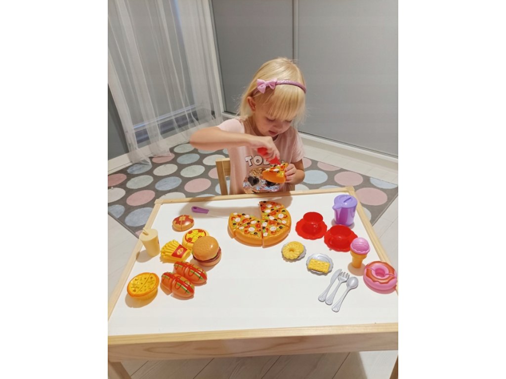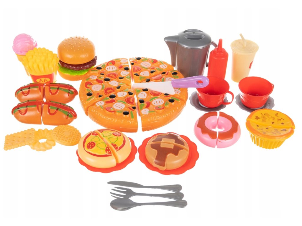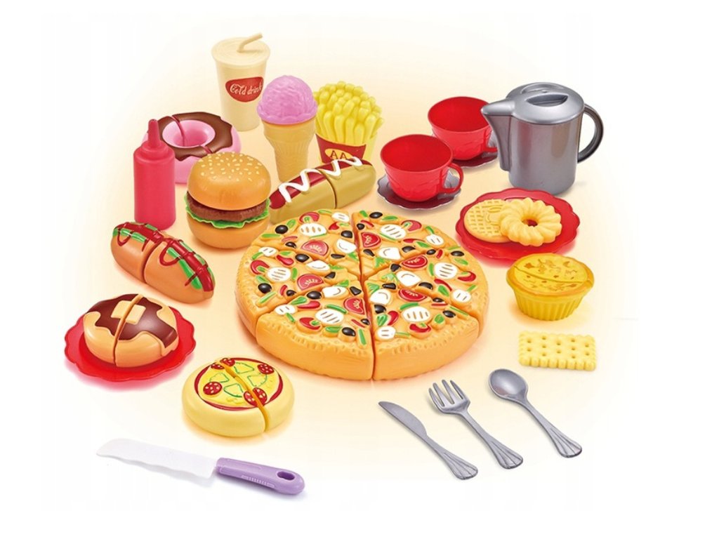 - SET HRAČEK RYCHLÉHO OBČERSTVENÍ - tato sada hraček osloví každého malého kuchaře či kuchařku. Skládá se z až 42 prvků, včetně párků v rohlíku, pizzy a hranolků. Tyto produkty umožní vašemu dítěti připravovat chutné pokrmy. Bude perfektním doplňkem do dětské kuchyňky.