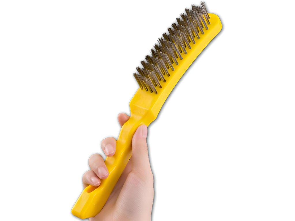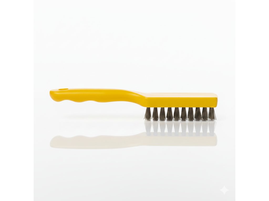 Tento robustní ruční drátěný kartáč je ideálním nástrojem pro čištění a přípravu povrchů. Díky šesti řadám hustě osazených ocelových štětin si hravě poradí s odolnou rzí, starými nátěry, okujemi po svařování i hluboko usazenými nečistotami na kovu, betonu nebo kameni. Žluté provedení zajišťuje dobrou viditelnost v dílně nebo na stavbě.