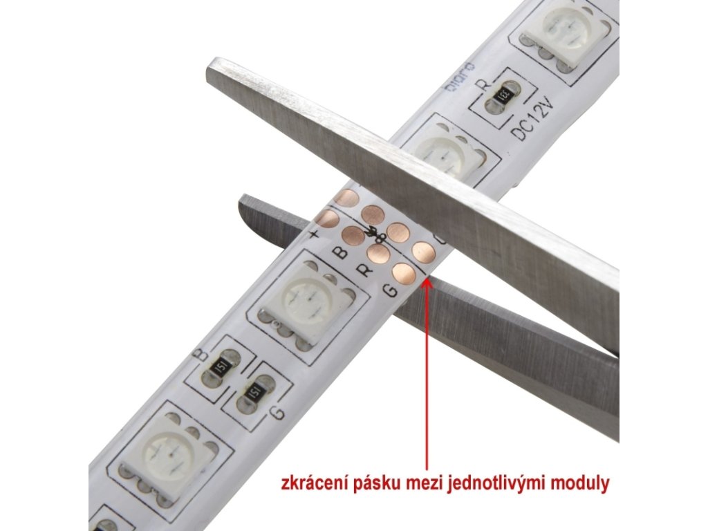 - Pásek je možné střihat po 5 cm (5 cm = 3 LED)