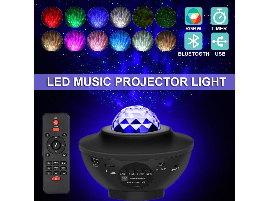 LED projektor uspokojí tvé představy o romantickém a relaxačním osvětlení i fantastické projekci na originálních zábavách a večírcích. Vybaven Bluetooth reproduktorem a dálkovým ovládáním se stane jediným zařízením, které k vytvoření jedinečné atmosféry opravdu potřebuješ!