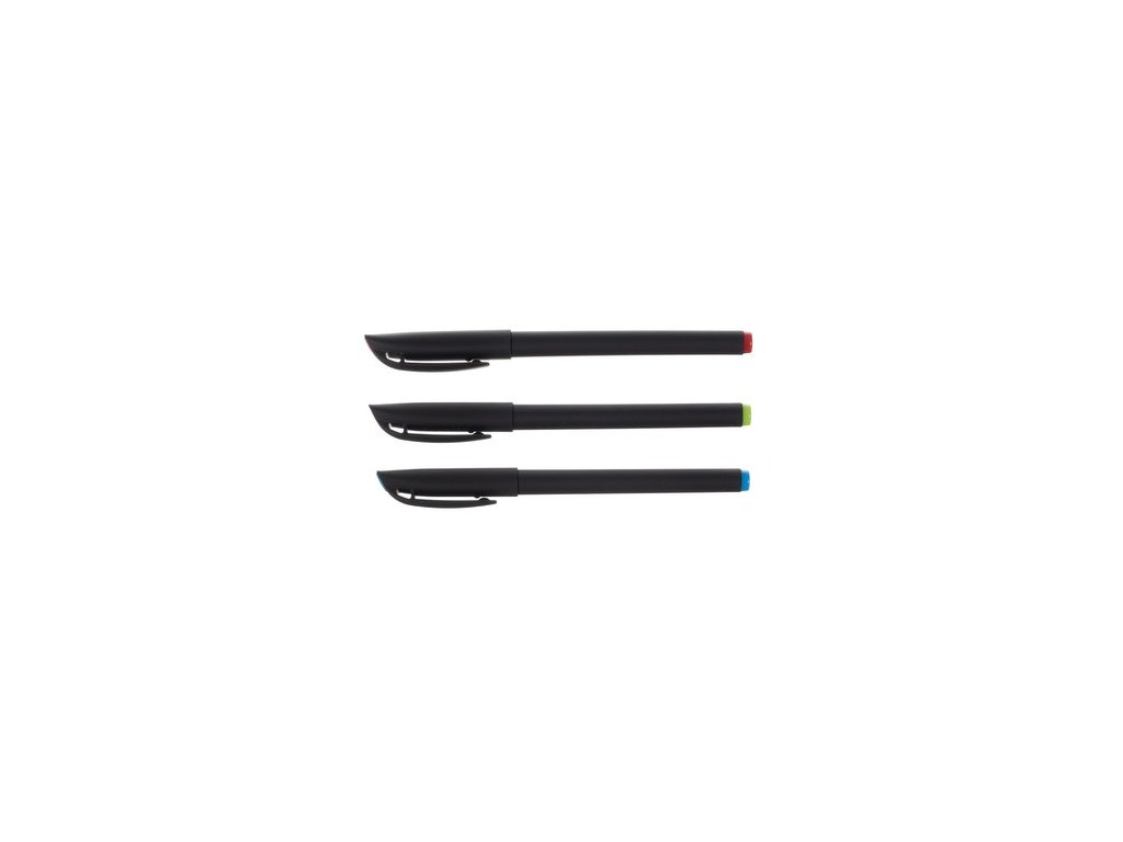 - 3 pera/jemné linky (modrá, zelená, červená)