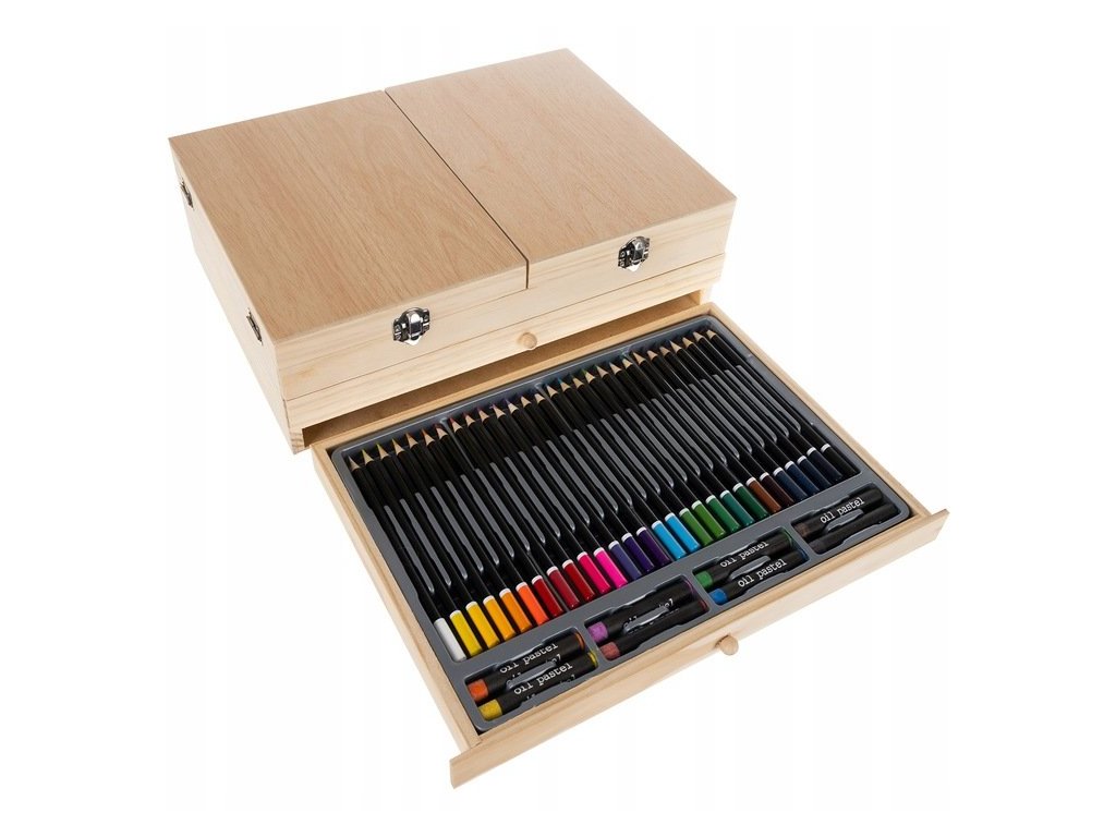 Umělecká souprava na malování představuje obrovský výběr až 83 prvků, díky kterým můžete vytvářet mimořádně kreativní, nápaditá a originální umělecká díla. Sada na malování obsahuje mnoho prvků, včetně: barev, pastelek, tužek, stojanu a mnoha dalších doplňků. Pomocí tak obrovského výběru prvků rozvinete svou fantazii a určitě vytvoříte kreativní díla.
