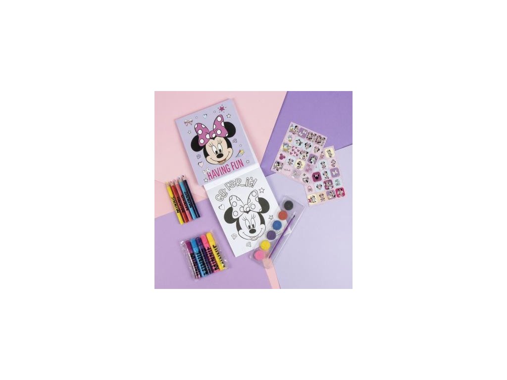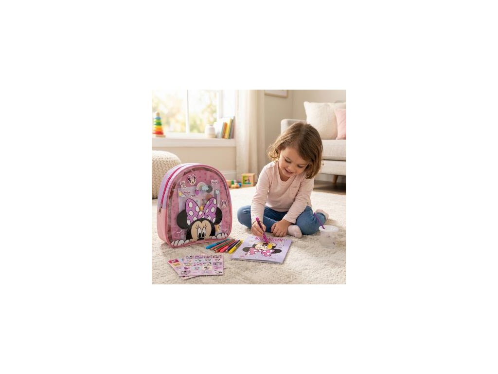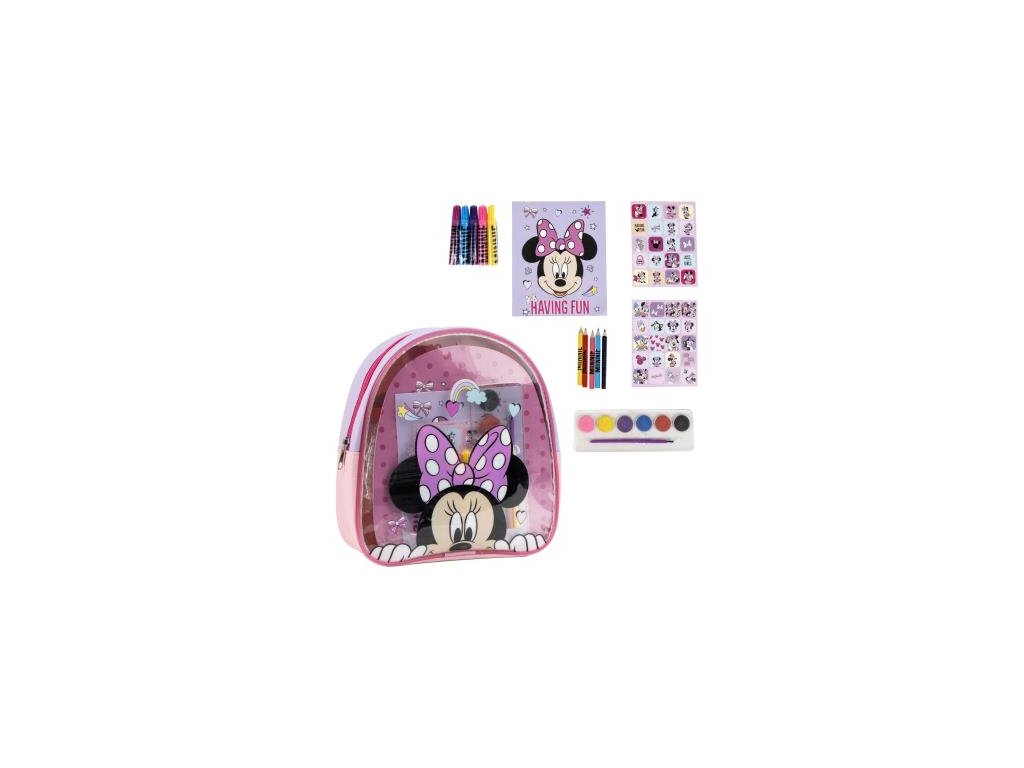 Omalovánková sada v roztomilém batůžku s motivem Minnie Mouse je skvělou kreativní sadou na cesty. Batůžek obsahuje omalovánky a kreslicí pomůcky – vždy po ruce kdekoliv. Materiál: MULTICOMPOSITION. Rozměry: 23.0 × 24.0 × 7.0 CM cm. Hmotnost: 0,28 kg. Vhodné pro děti předškolního a školního věku.