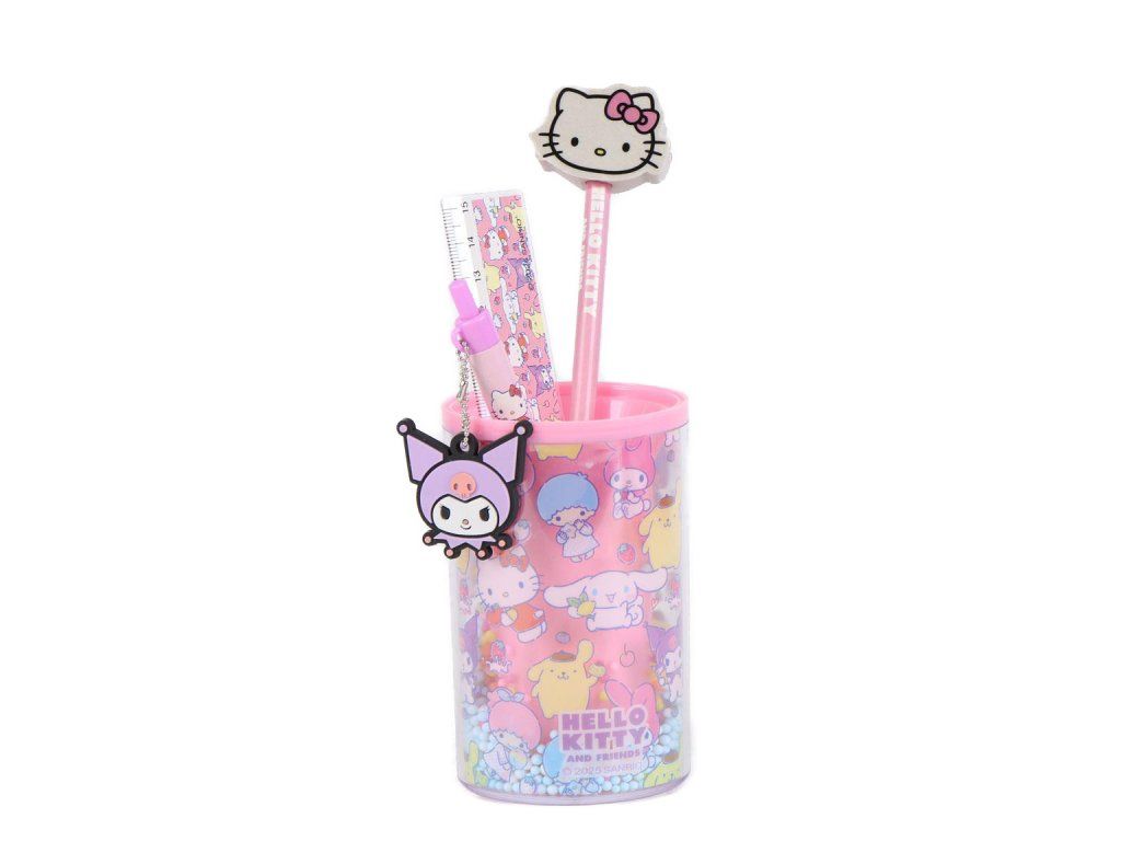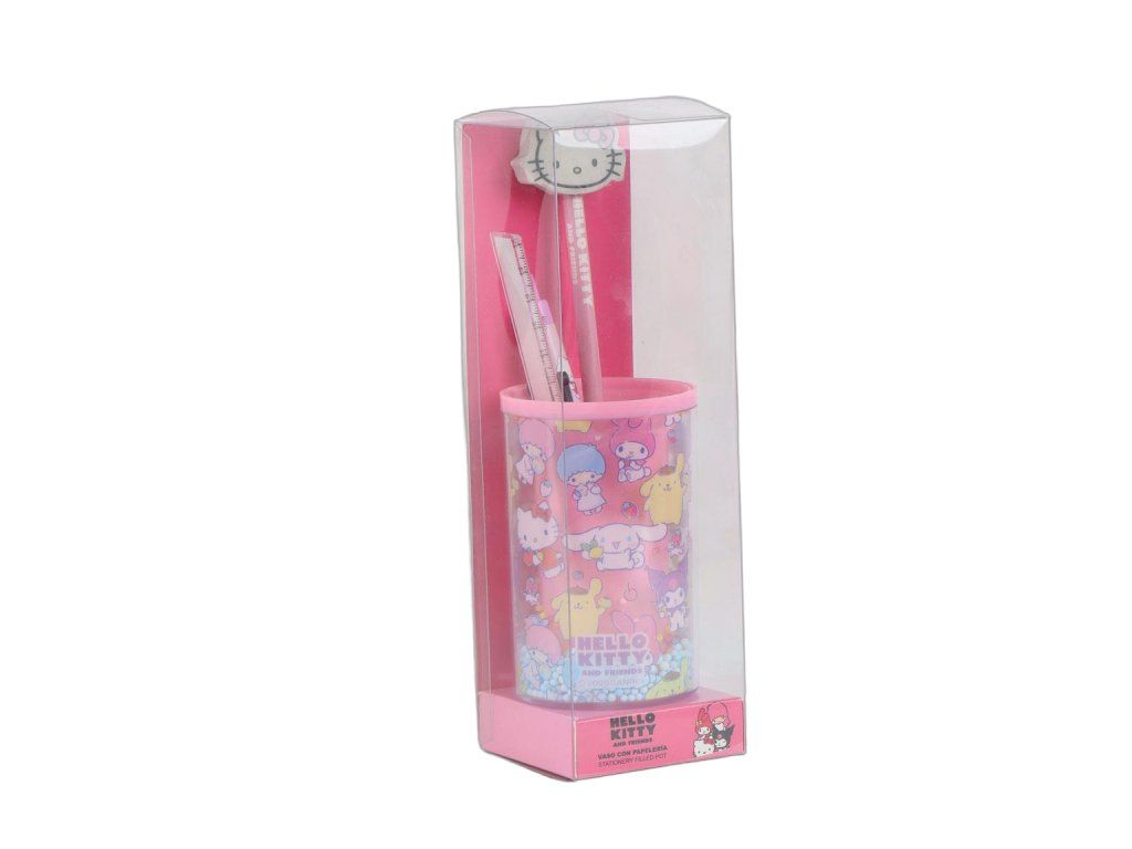 Psací sada s pouzdrem a stojánkem na tužky s motivem Hello Kitty je praktickým organizátorem pro psací stůl. Sada obsahuje pouzdro, stojánek a papírenské potřeby zdobené oblíbenými motivy. Materiál: MULTICOMPOSITION. Rozměry: TU cm. Hmotnost: 0,229 kg. Vhodné pro děti předškolního a školního věku.