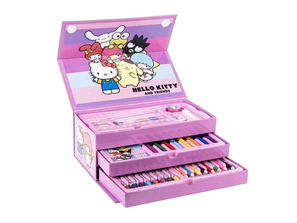 Omalovánková sada v stylové pouzdře s motivem Hello Kitty je ideálním kreativním dárkem. Aktovka obsahuje omalovánky a pastelky – vše přehledně uspořádané a snadno přenosné. Materiál: MULTICOMPOSITION. Rozměry: 26.0 × 10.0 × 13.0 CM cm. Hmotnost: 0,64 kg. Vhodné pro děti předškolního a školního věku.
