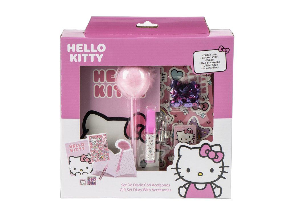 Sada deníku s motivem Hello Kitty je stylovým dárkem pro každého malého zapisovatele. Sada obsahuje deník a doplňky zdobené oblíbenými motivy. Materiál: MULTICOMPOSITION. Rozměry: 23.5 × 25.0 × 5.5 CM cm. Hmotnost: 0,325 kg. Vhodné pro děti předškolního a školního věku.