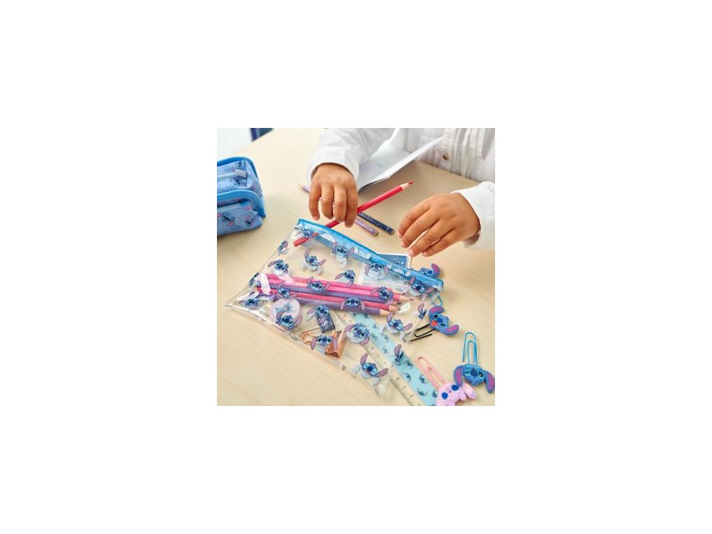 Kompletní školní papírenská sada s motivem Stitch je skvělým dárkem pro každého školáka. Set obsahuje vše potřebné do školy a je zdoben oblíbenými motivy. Materiál: 70%PVC 10%PLASTIC 20%PAPER. Rozměry: 22.0 × 14.0 × 0.5 CM cm. Hmotnost: 0,135 kg. Vhodné pro děti předškolního a školního věku.