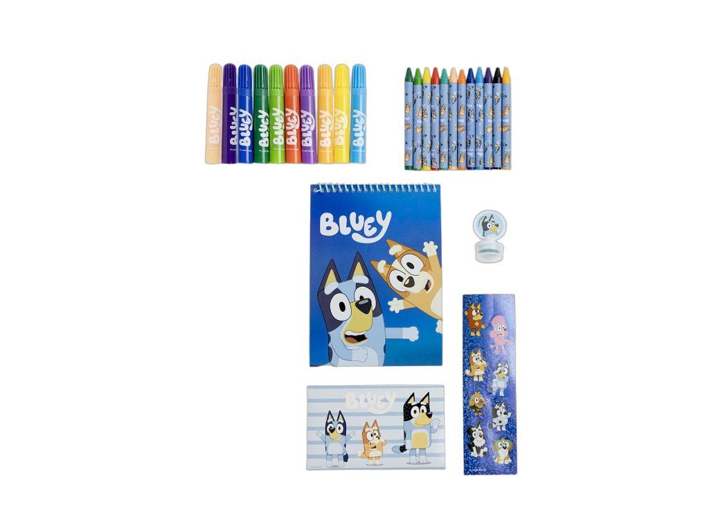Omalovánková sada s motivem Bluey je kreativní zábavou pro každé dítě. Display formát zajišťuje přehledné uspořádání všech pomůcek. Materiál: MULTICOMPOSITION. Rozměry: 30.0 × 30.0 × 2.5 CM cm. Hmotnost: 0,375 kg. Vhodné pro děti předškolního a školního věku. Rozvíjí kreativitu a jemnou motoriku.