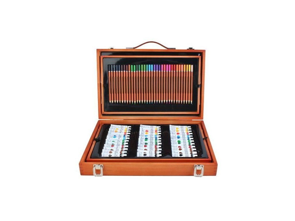- 174 POLOŽEK - s pomocí obrovského výběru 54 olejových pastelů, 34 tužek, 36 různých druhů barev (po 12 kusech olejových, akrylových a akvarelových barev), 42 fixů, 2 tužky, 4 štětce, ořezávátka, gumy můžete snadno vytvořit nejnáročnější, nejkreativnější a originální díla. Součástí jsou produkty jako omalovánka, podložka na kreslení a paleta na míchání barev.